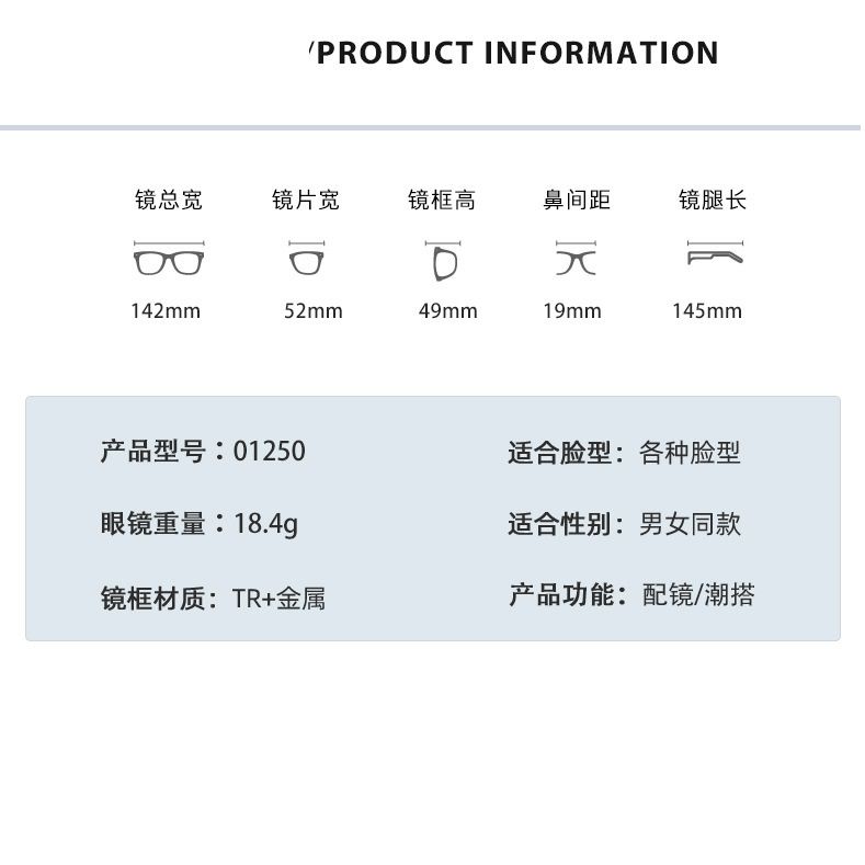- Размер: общая ширина - 142 мм, ширина линзы - 52 мм, высота линзы - 49 мм, мост - 19 мм, длина заушника - 145 мм