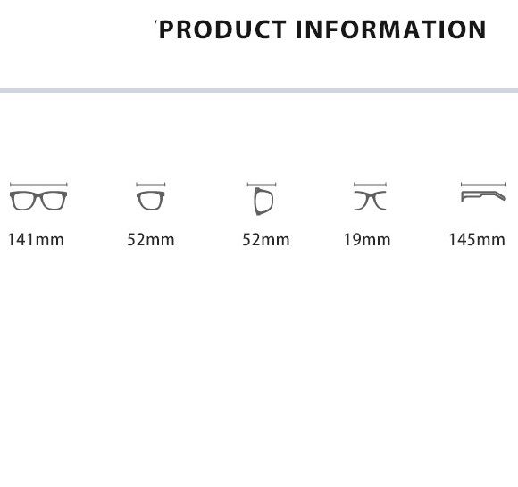 - Размер: общая ширина -141 мм, ширина линзы - 52 мм, высота линзы - 52мм, мост - 19 мм, длина заушника - 145 мм
