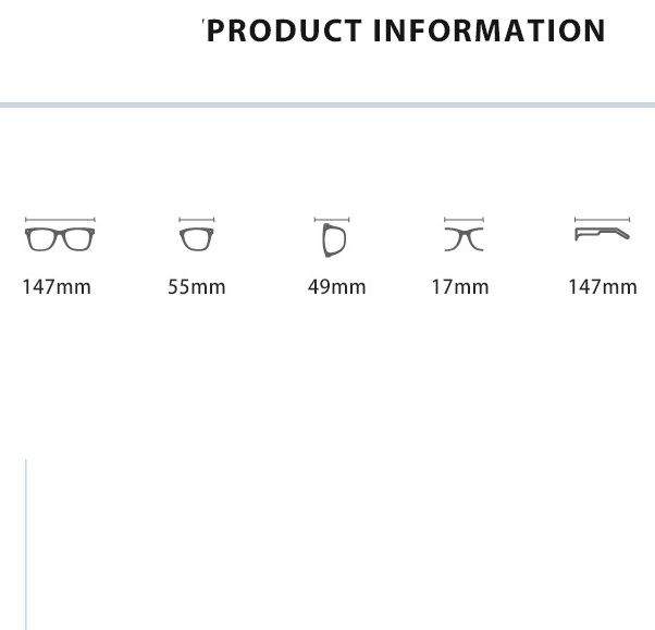 - Размер: общая ширина -147 мм, ширина линзы - 57 мм, высота линзы - 49 мм, мост - 17 мм, длина заушника - 147 мм