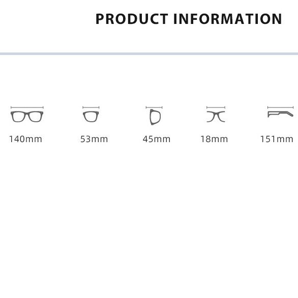 • Размер: общая ширина -140 мм, ширина линзы - 53 мм, высота линзы - 45 мм, мост - 18 мм, длина заушника - 151 мм