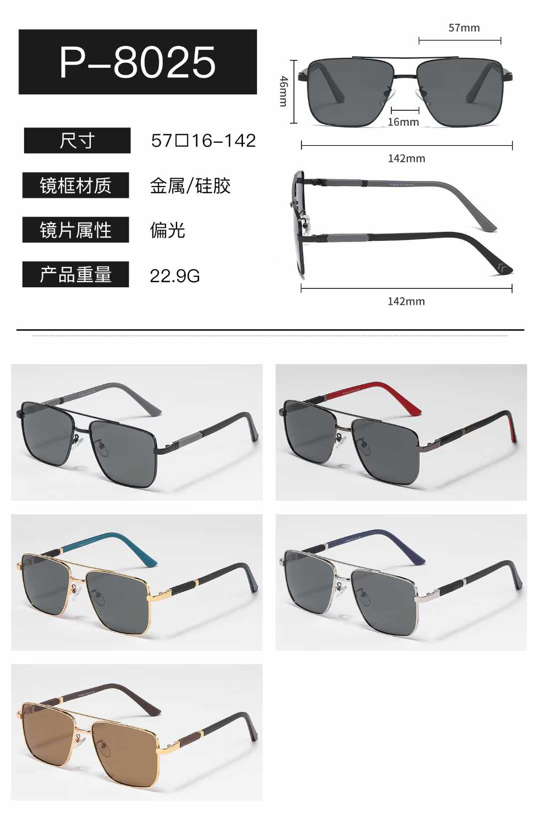 - Размер: ширина линзы - 57 мм, мост - 16 мм, длина заушника - 142 мм