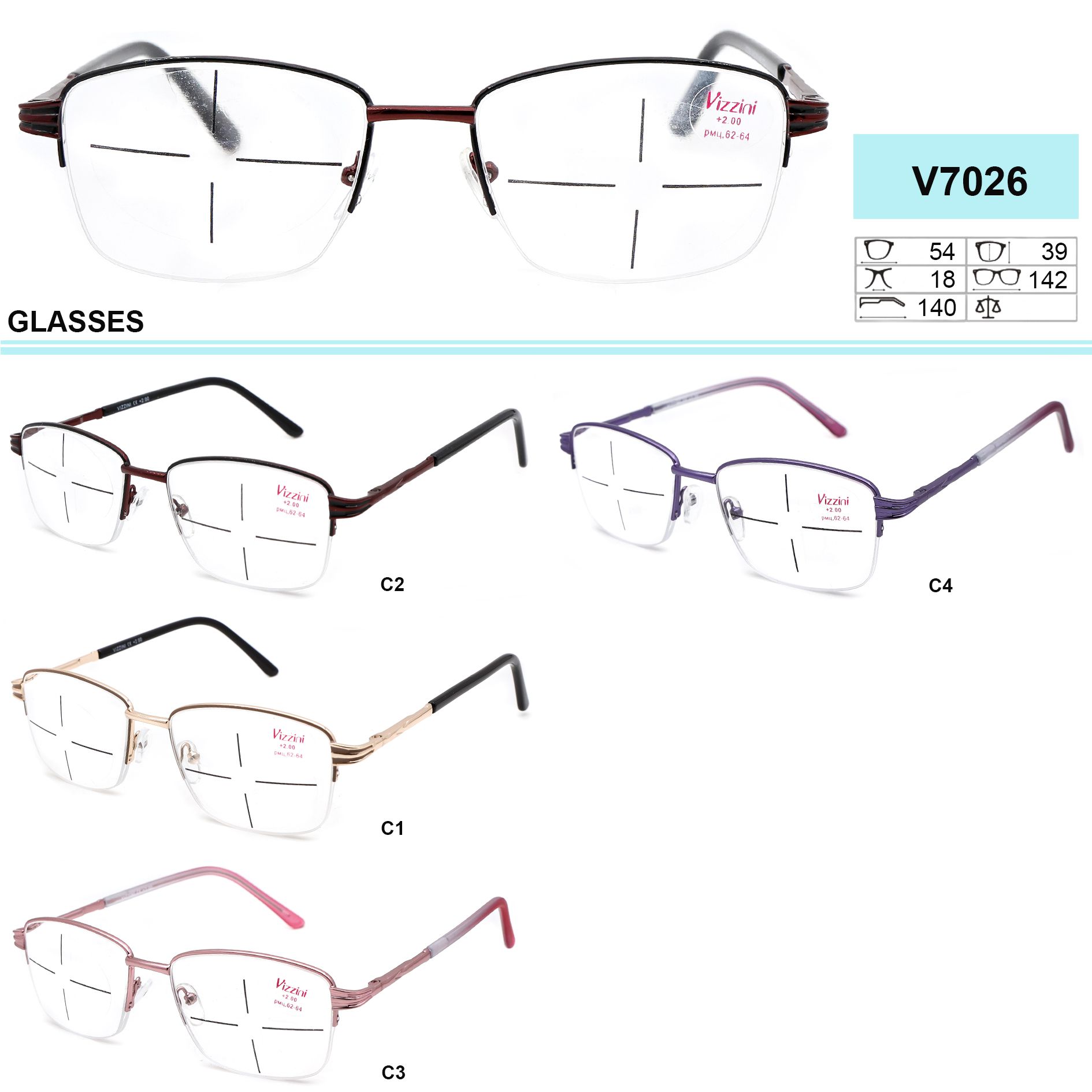 Очки готовые полуободковые в металлической оправе Vizzini V7026, линзы пластик, диоптрии +1.00 до +4.00 (шаг 0.25)