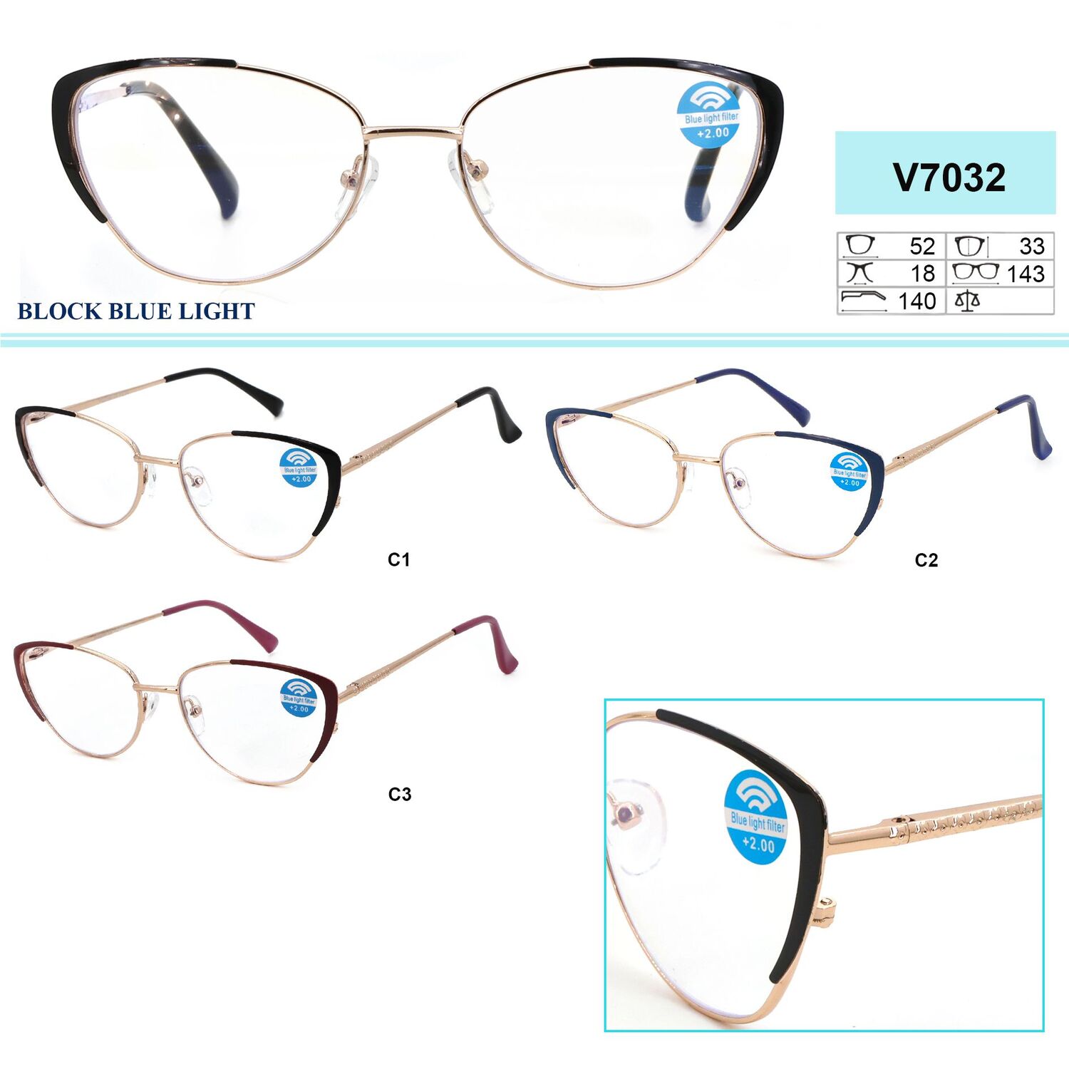 Очки Vizzini V7032 block blue light в металлической оправе +0.75 до +4.00 (шаг 0.25)