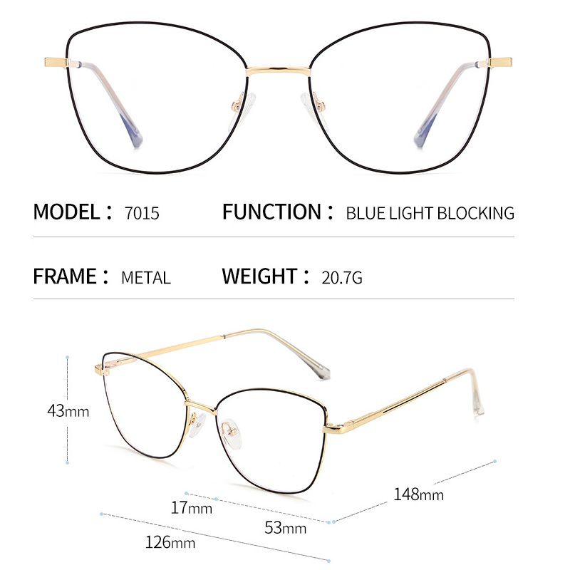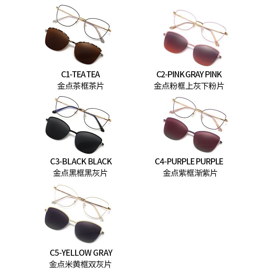 Оправа металлическая кошачий глаз с защитой от синего света с флексом + магнитная солнцезащитная насадка (клипон) 7015-GT