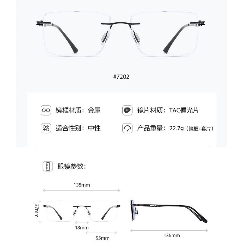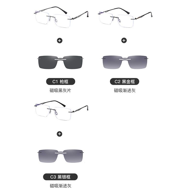 Оправа безрамочная металлическая мужская + магнитная солнцезащитная насадка (клипон) 7202-GT 7202-GT Black lens 黑片 C1 ¥ 26.00 В наличии