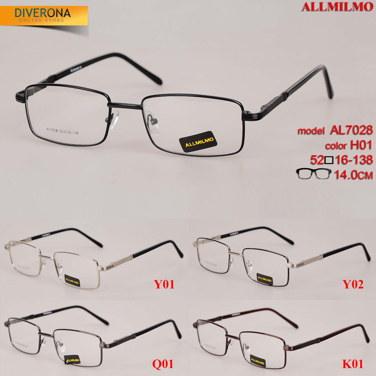 Недорогие металлические оправы для очков Allmilmo. Классическая форма. Производитель: Китай. Предлагаем купить их в нашем интернет-магазине Diverona.