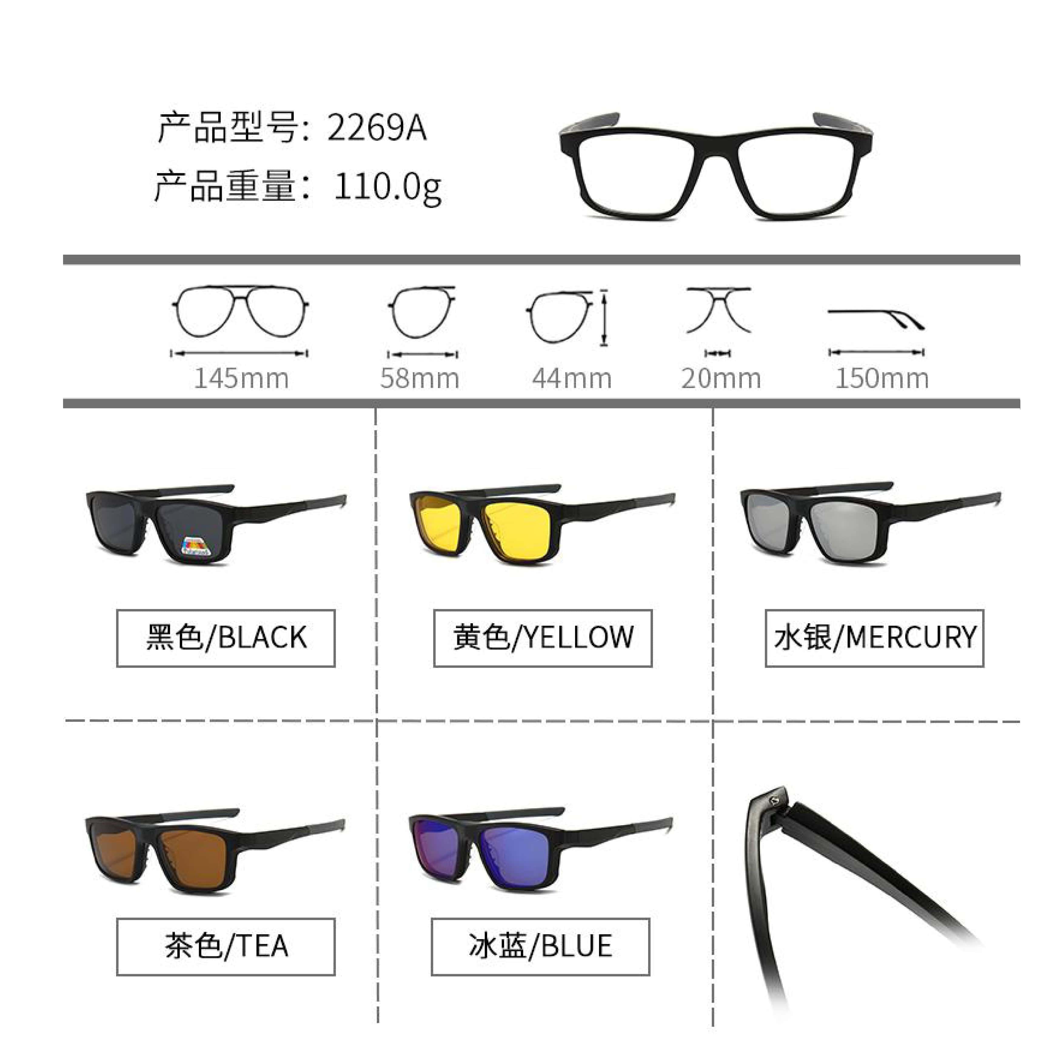 Оправа El Dorado с комплектом поляризационных солнцезащитных насадок (клипон) на магните 2269A (5 штук)