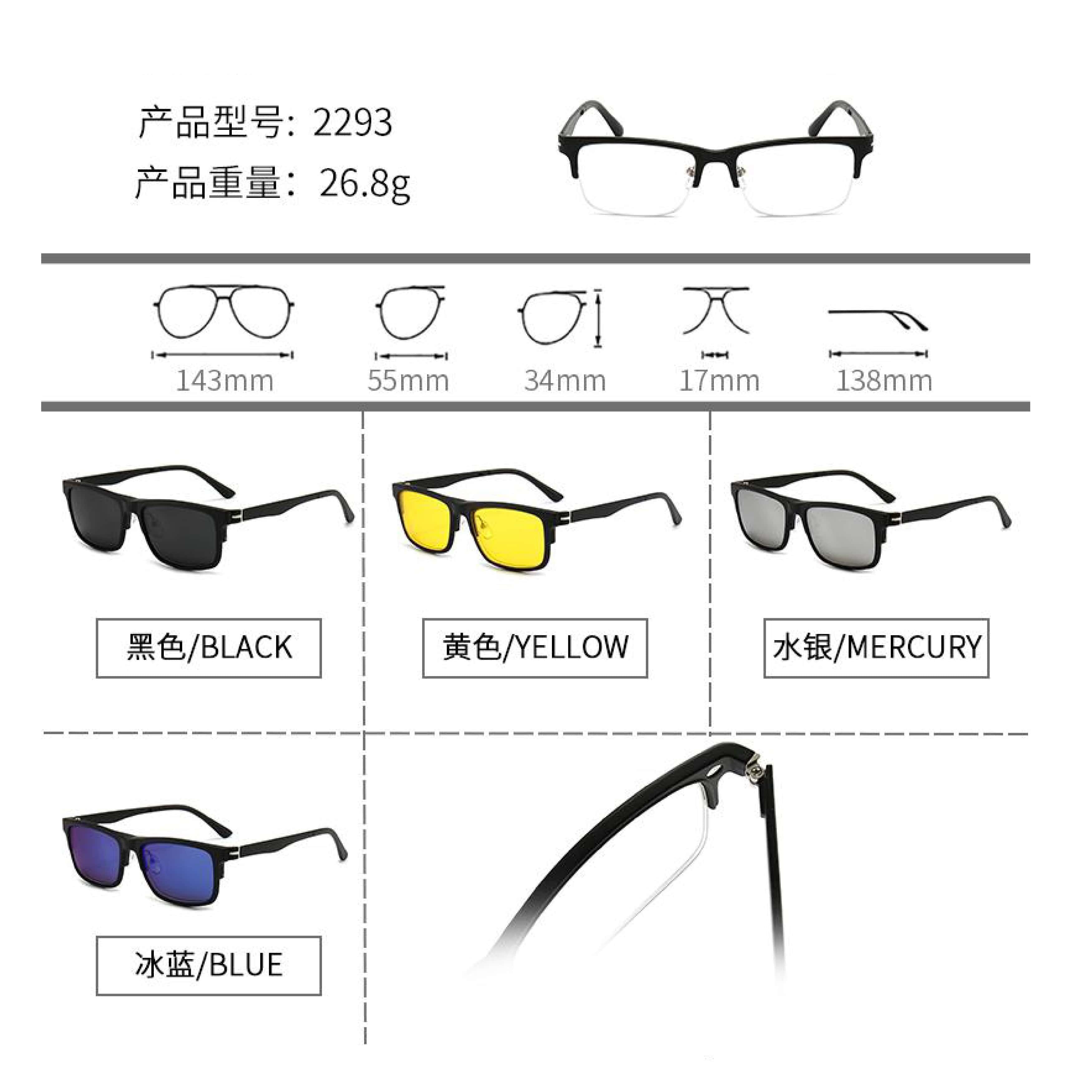 Оправа El Dorado с комплектом поляризационных солнцезащитных насадок (клипон) на магните 2293 (5 штук)