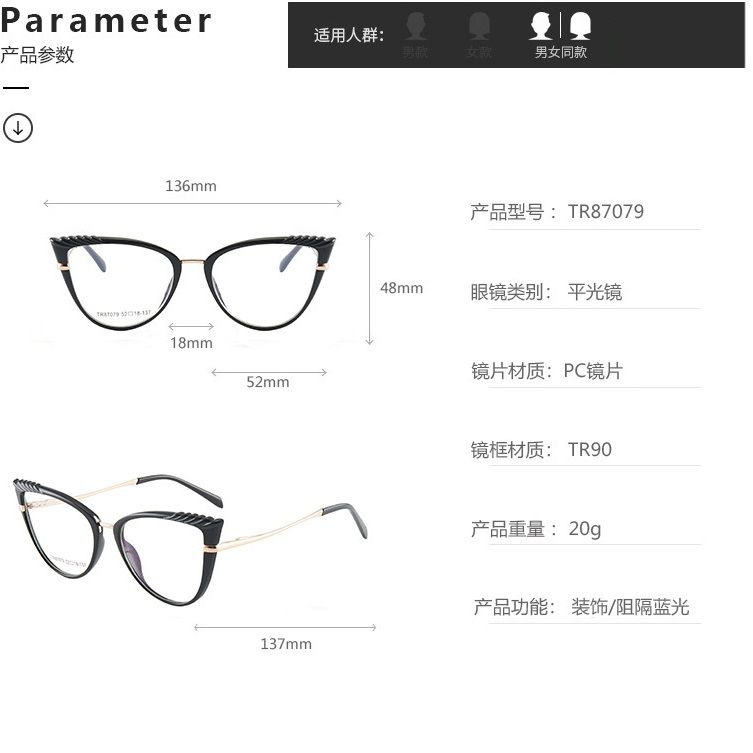 Оправа для очков пластиковая TR90 с защитой от синего света, с флексом FA87079
