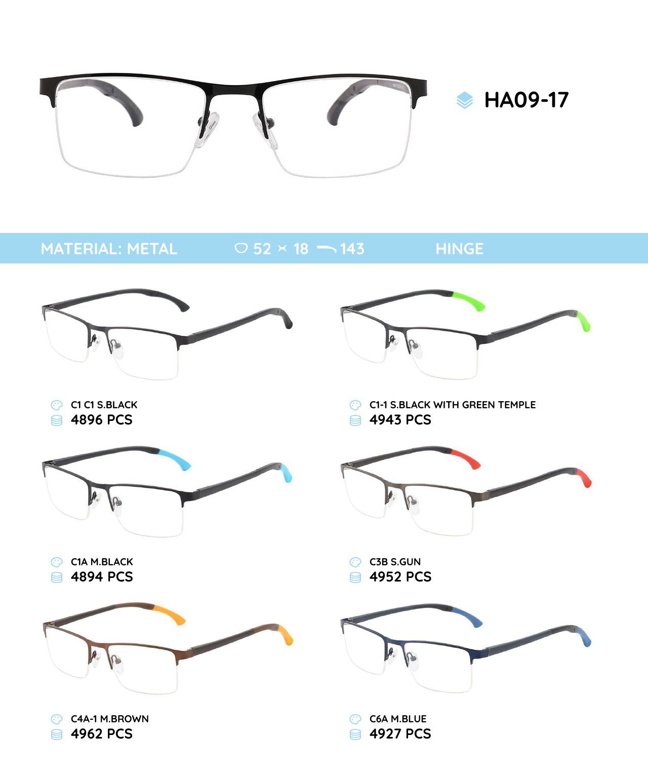 Металлическая оправа с дужками из материала TR-90 с гнущимся наконечником HA09-17