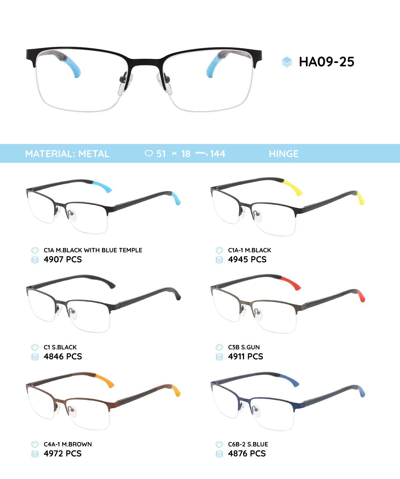Металлическая оправа с дужками из материала TR-90 с гнущимся наконечником HA09-25
