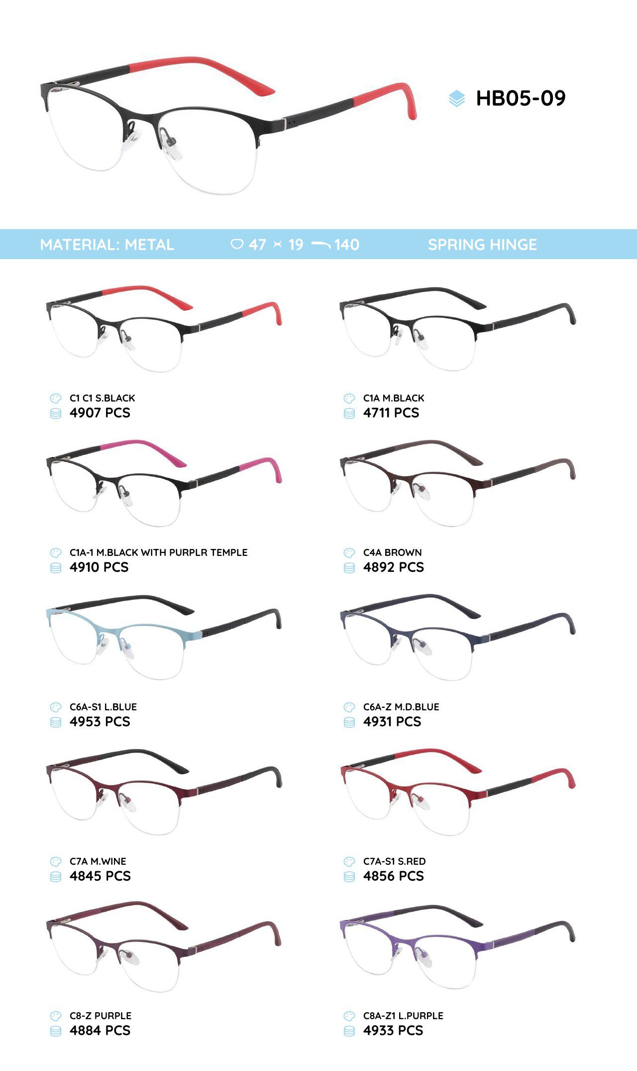 Металлическая оправа с дужками из материала TR-90 HB05-09