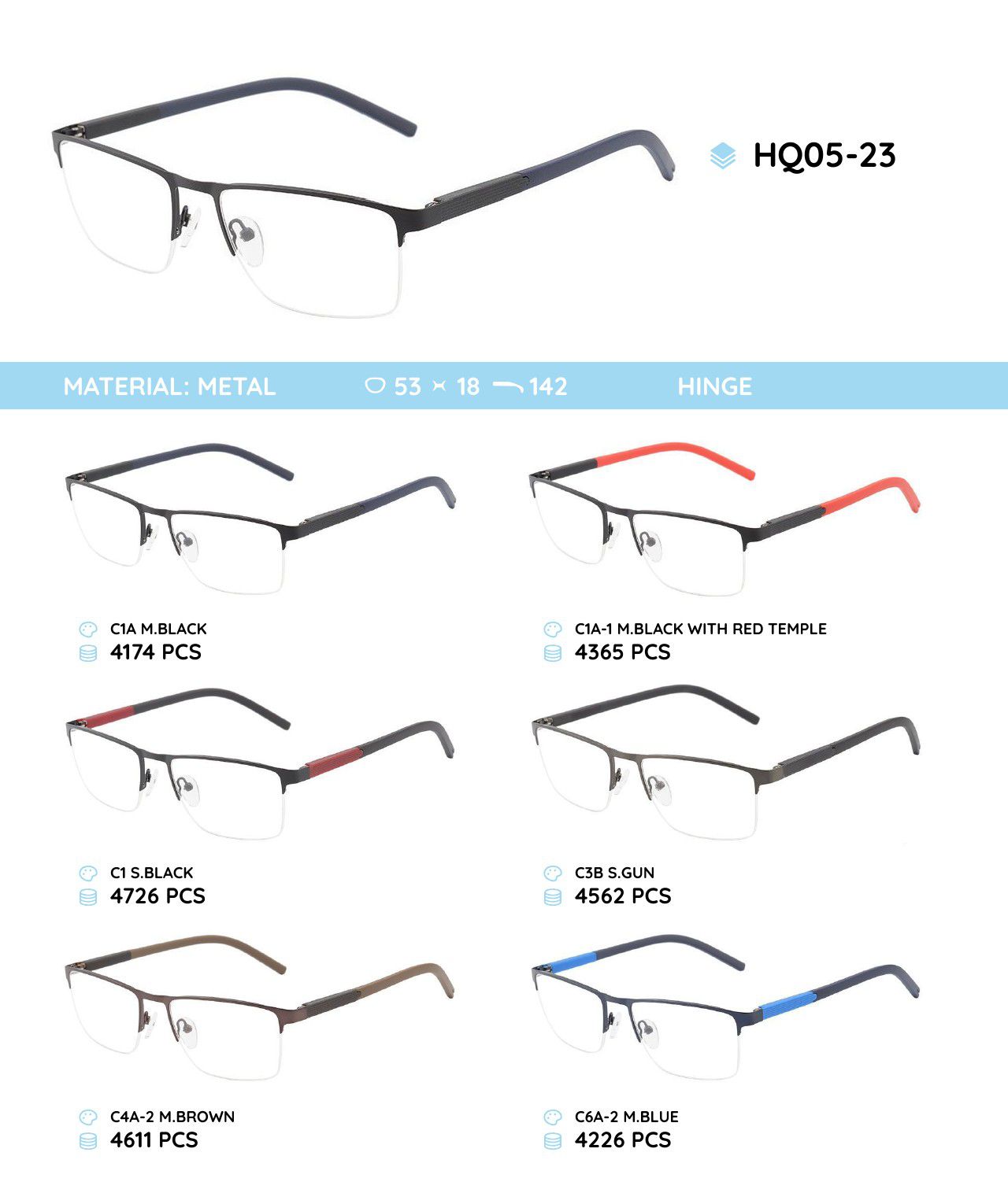 Металлическая оправа с дужками из материала TR-90 HQ05-23