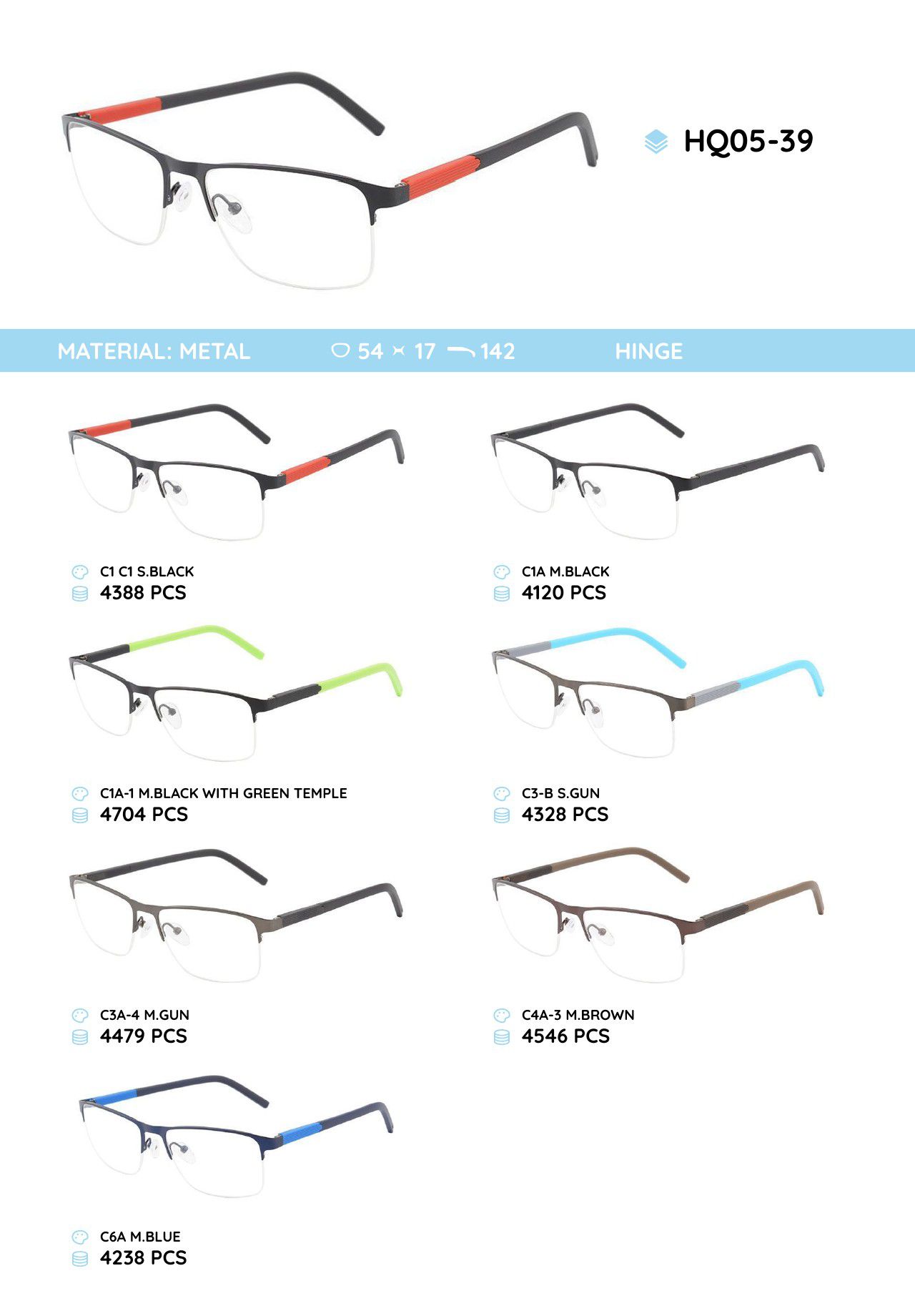 Металлическая оправа с дужками из материала TR-90 HQ05-39