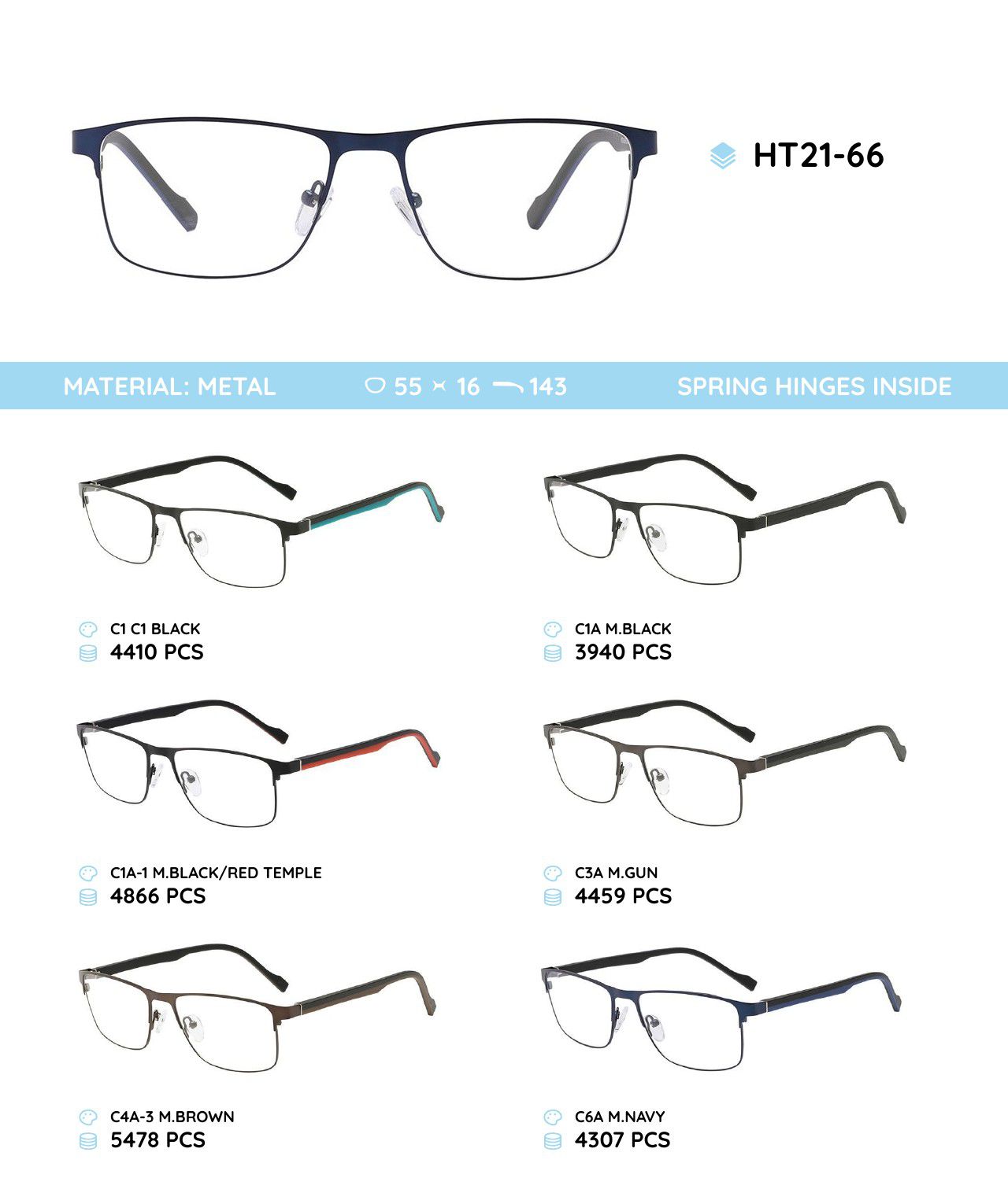 Металлическая оправа с дужками из материала TR-90 HT21-66