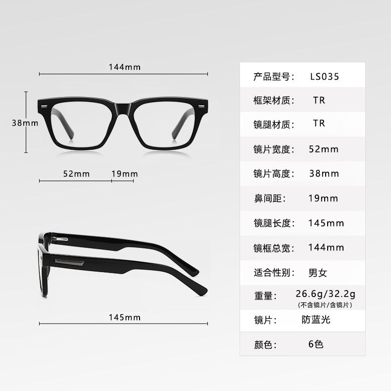 - Материал рамки: пластик TR90