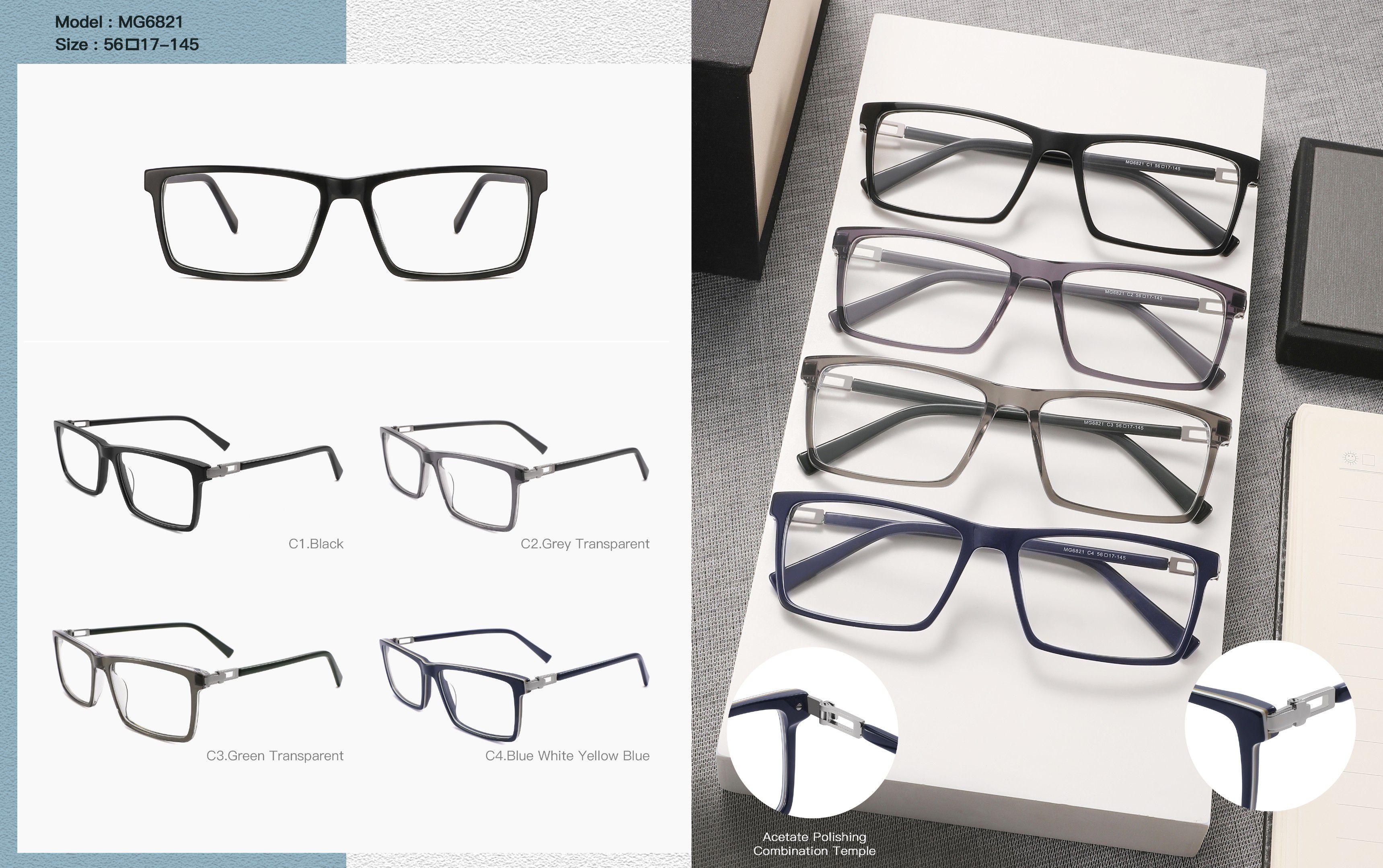 - Материал оправы: пластик ацетат, металл