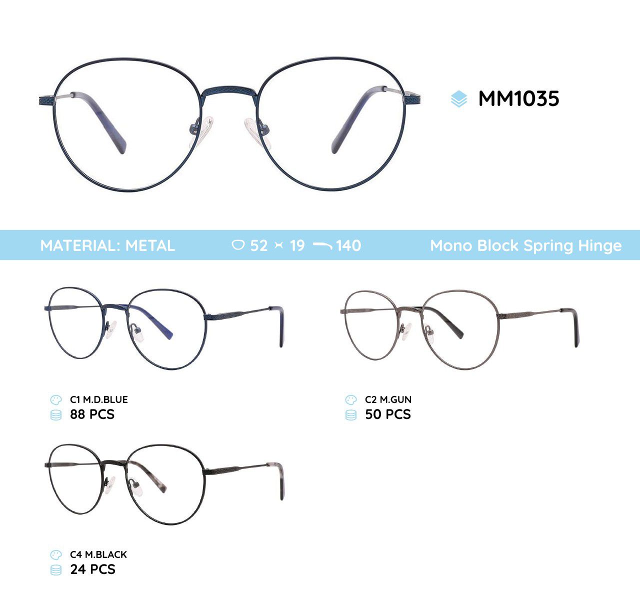Оправа для очков металлическая мужская с флексом MM1035 MM1035-NV C1 mix ¥ 33.06 В наличии