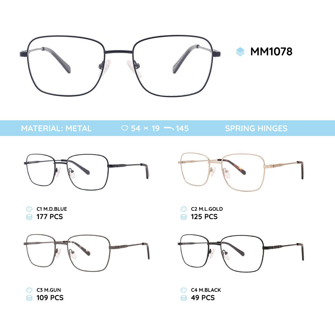 Оправа для очков металлическая мужская с флексом MM1078 MM1078-NV C2 - ¥ 33.11 В наличии
