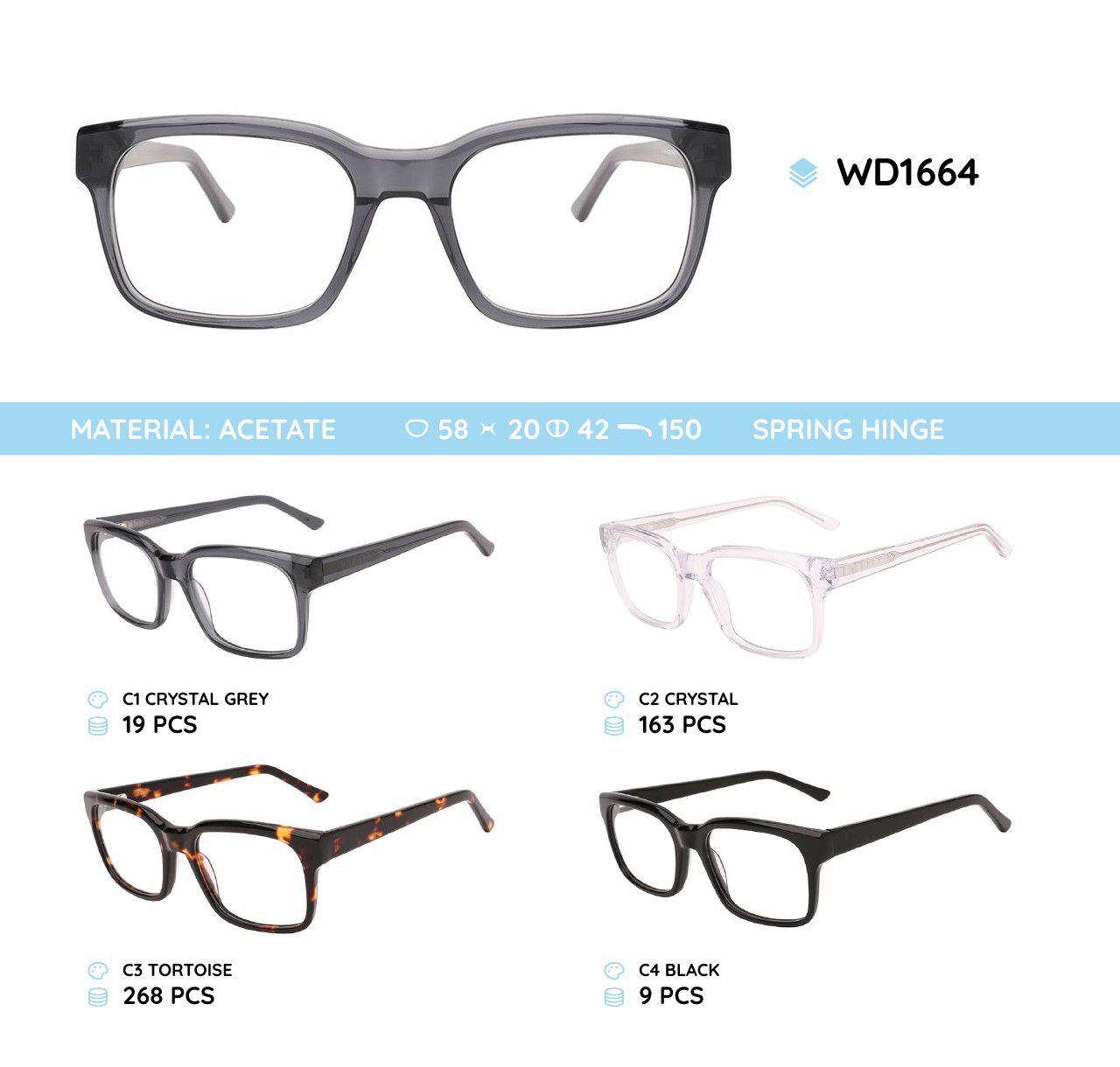Оправа для очков пластиковая из материала ацетат WD1664 WD1664-NV C1 - ¥ 34.43 В наличии