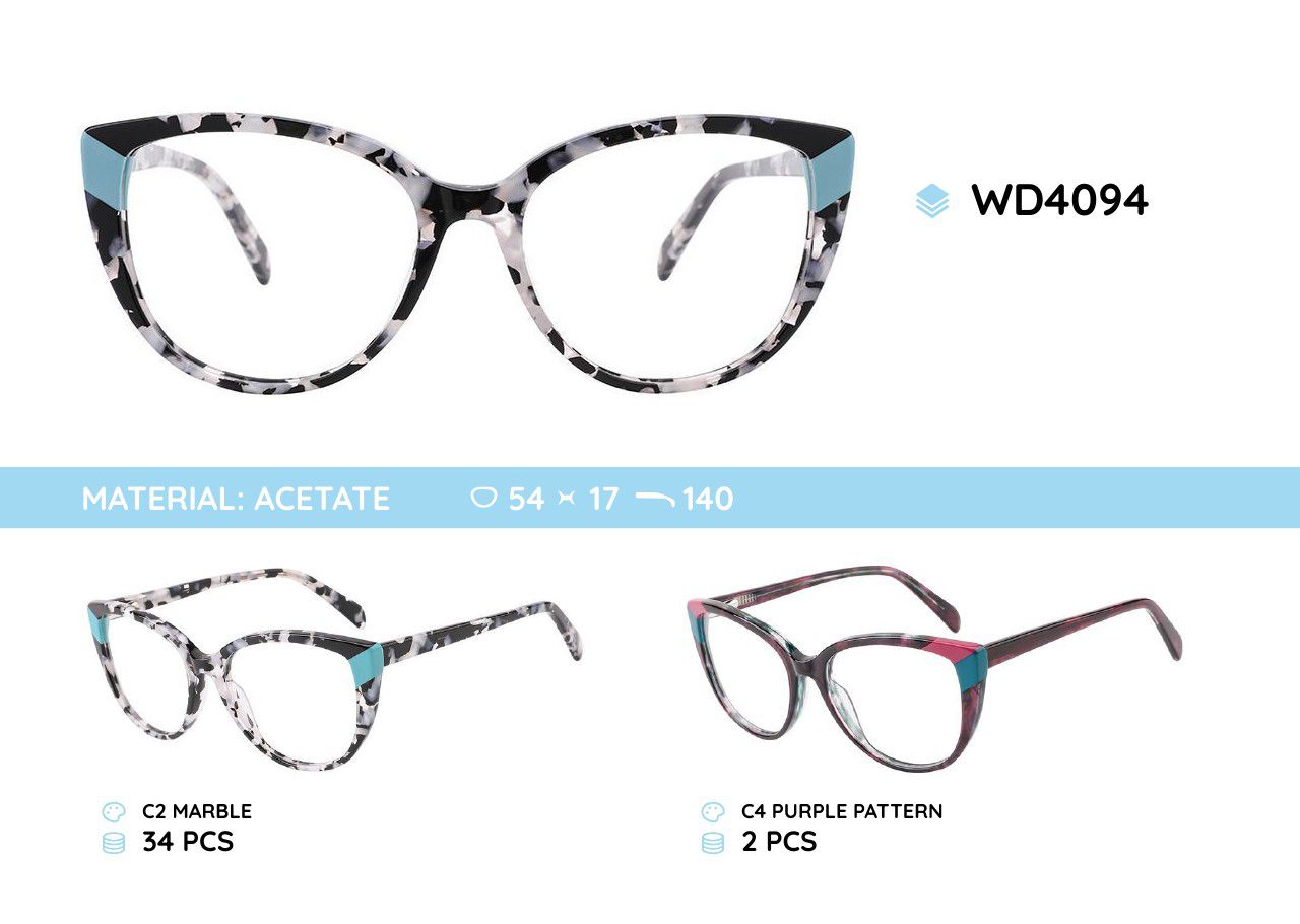 Оправа для очков женская пластиковая из материала ацетат WD4094 WD4094-MR C4 - ¥ 53.03 В наличии