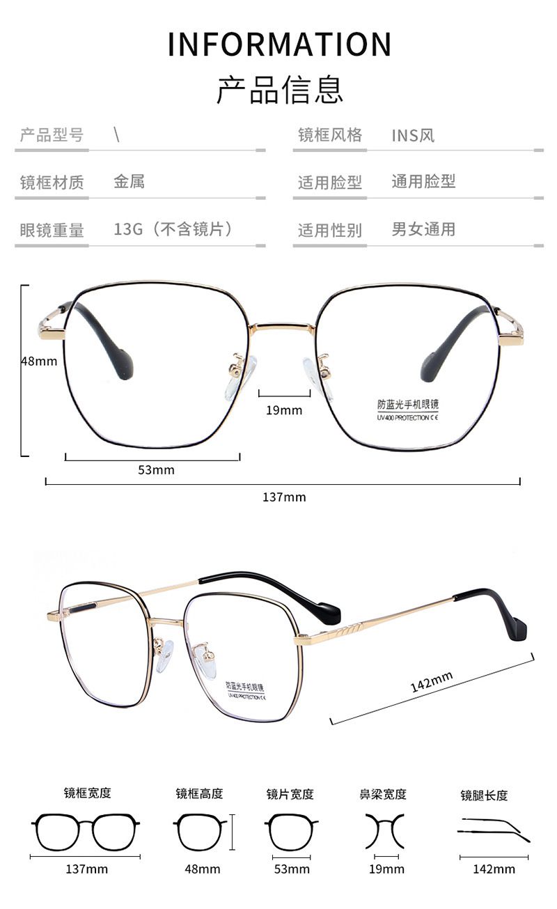 Оправа металлическая с линзами Blue Ray Cut MAMO B26003