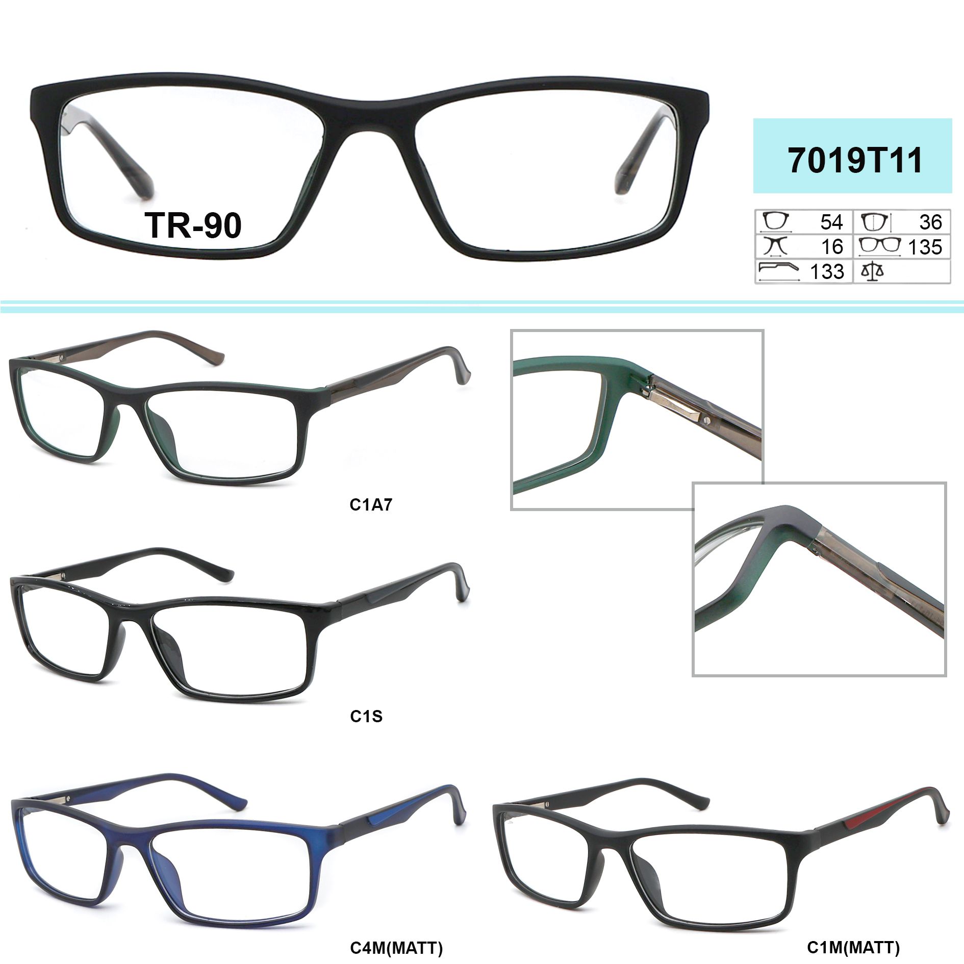 Оправы пластиковые из материала TR-90 (гриламид) GR7019T11