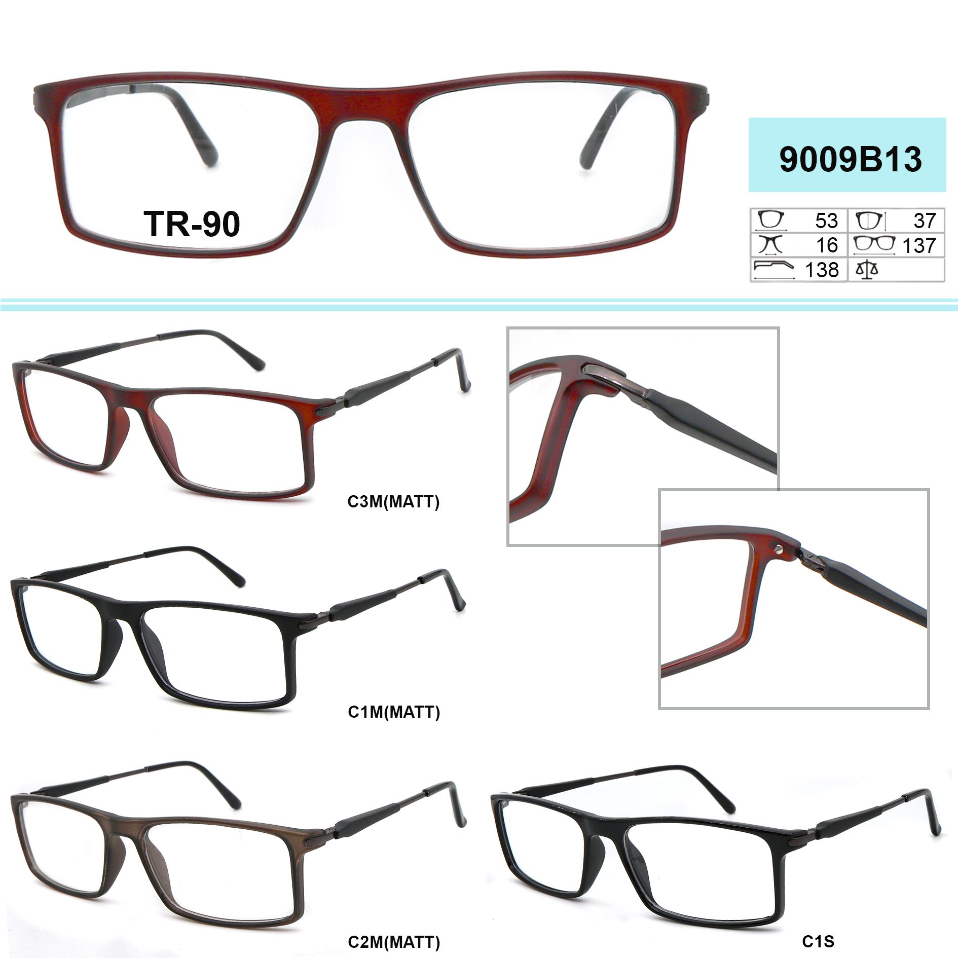 Оправы пластиковые из материала TR-90 (гриламид) GR9009B13