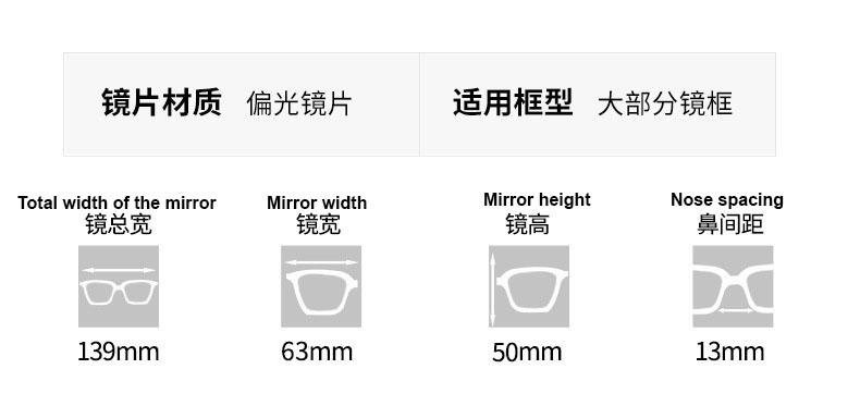 - Size: lens width - 63 mm, lens height - 50 mm, total item width - 139 mm