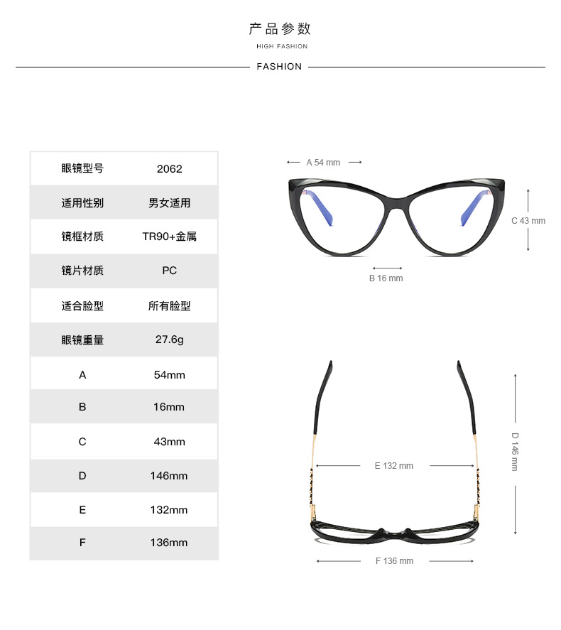 - Frame material: TR90 plastic