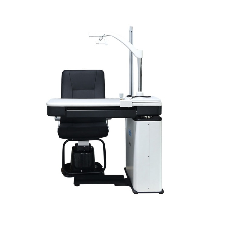 Модель включает в себя всё необходимое для проведения офтальмологических обследований. Удобная столешница с выдвижным ящиком, кресло с электроподъёмным механизмом регулируется по высоте. Откидывающиеся спинка и подлокотники способствуют обеспечению высокого уровня комфорта для пациентов. В верхней части рабочего места офтальмолога располагается лампа, угол наклона которой можно изменять. Для закрепления проектора знаков предусмотрен встроенный кронштейн. Аналогичная конструкция имеется и для фороптера.