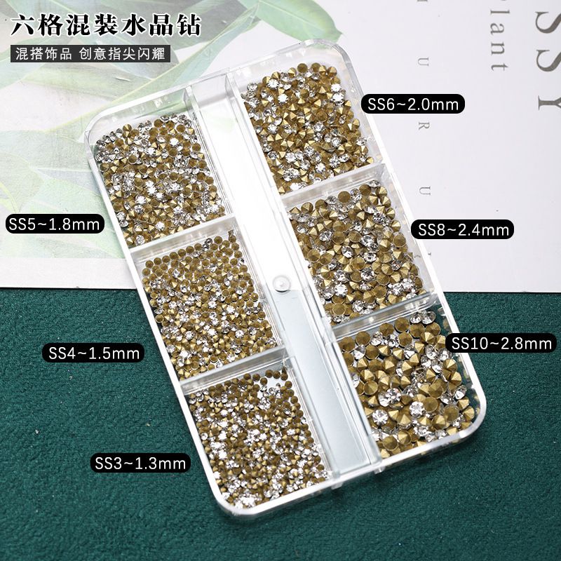 Set of rhinestones with a pointed bottom for frames and glasses decorating , transparent, sizes 1.3-2.8 mm (price per pack, 3 packs minimum)