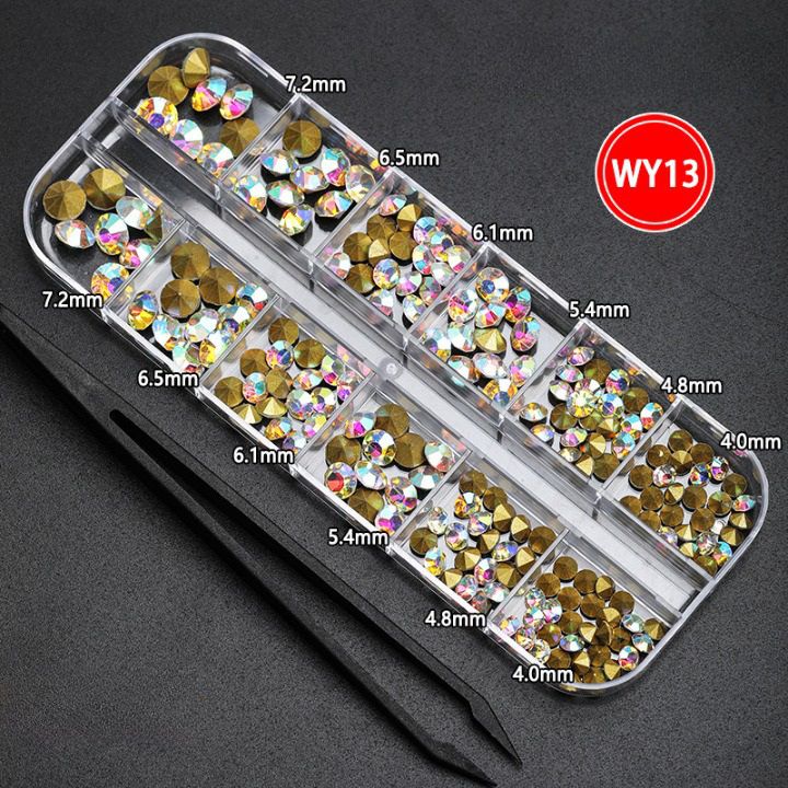 - Types of rhinestones: 12 sizes, hexagonal + tweezers included (see the attached picture)