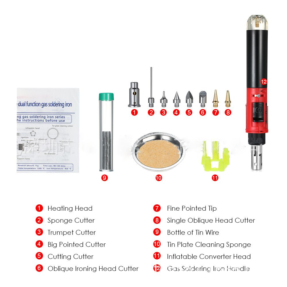 - Temperature: flame temperature - 1300 degrees, soldering iron temperature - 450 degrees