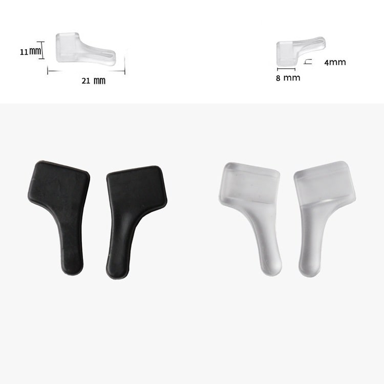 Стоппер - насадка на заушник, противоскользящий ушной крючок, 21*11 мм, прозрачные/чёрные, для средних дужек