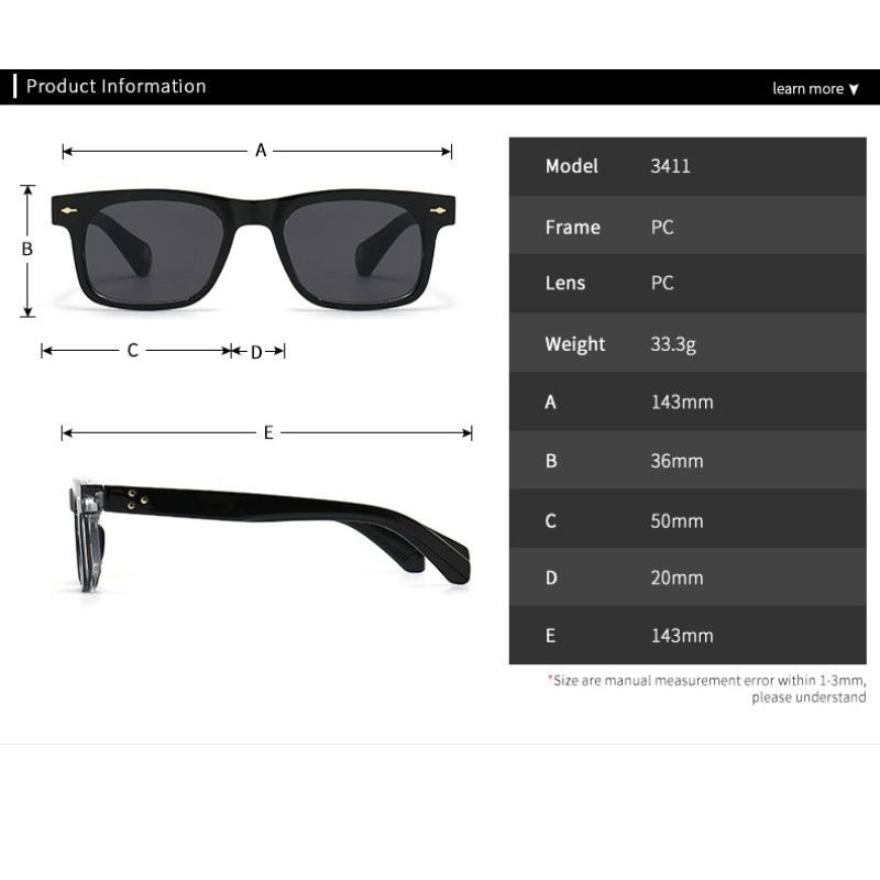 - Size: lens width - 50 mm, bridge - 20 mm, temple length - 143 mm