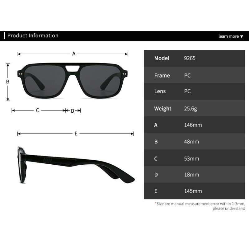 - Size: lens width - 53 mm, bridge - 18 mm, temple length - 145 mm