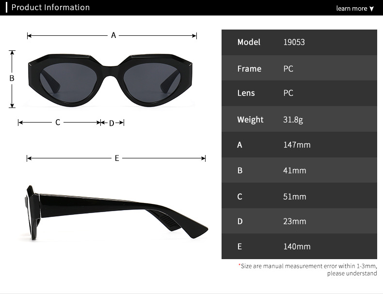 - Size: lens width - 51 mm, bridge distance - 23 mm, temple - 140 mm
