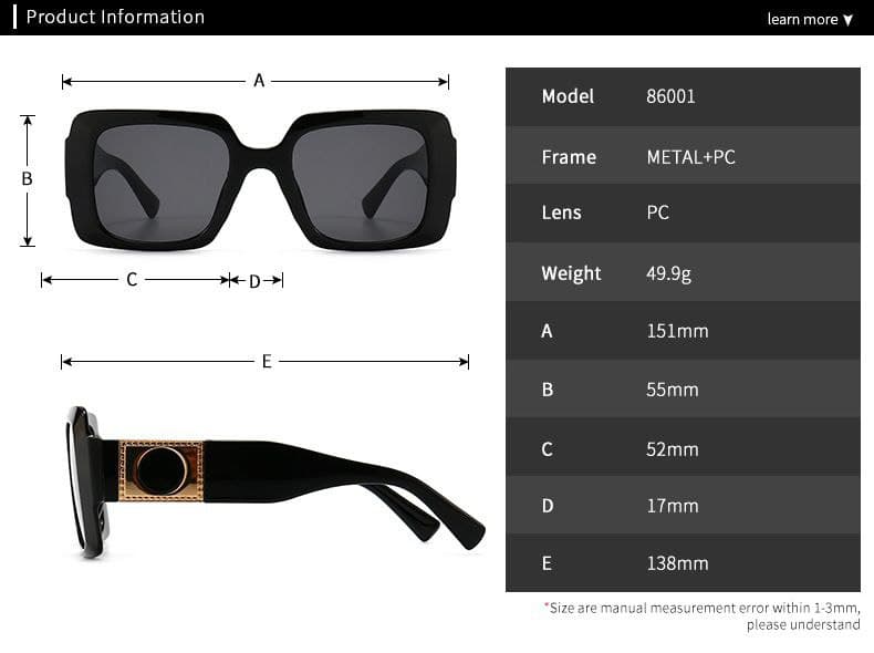 - Size: lens width - 52 mm, bridge distance - 17 mm, temple - 138 mm