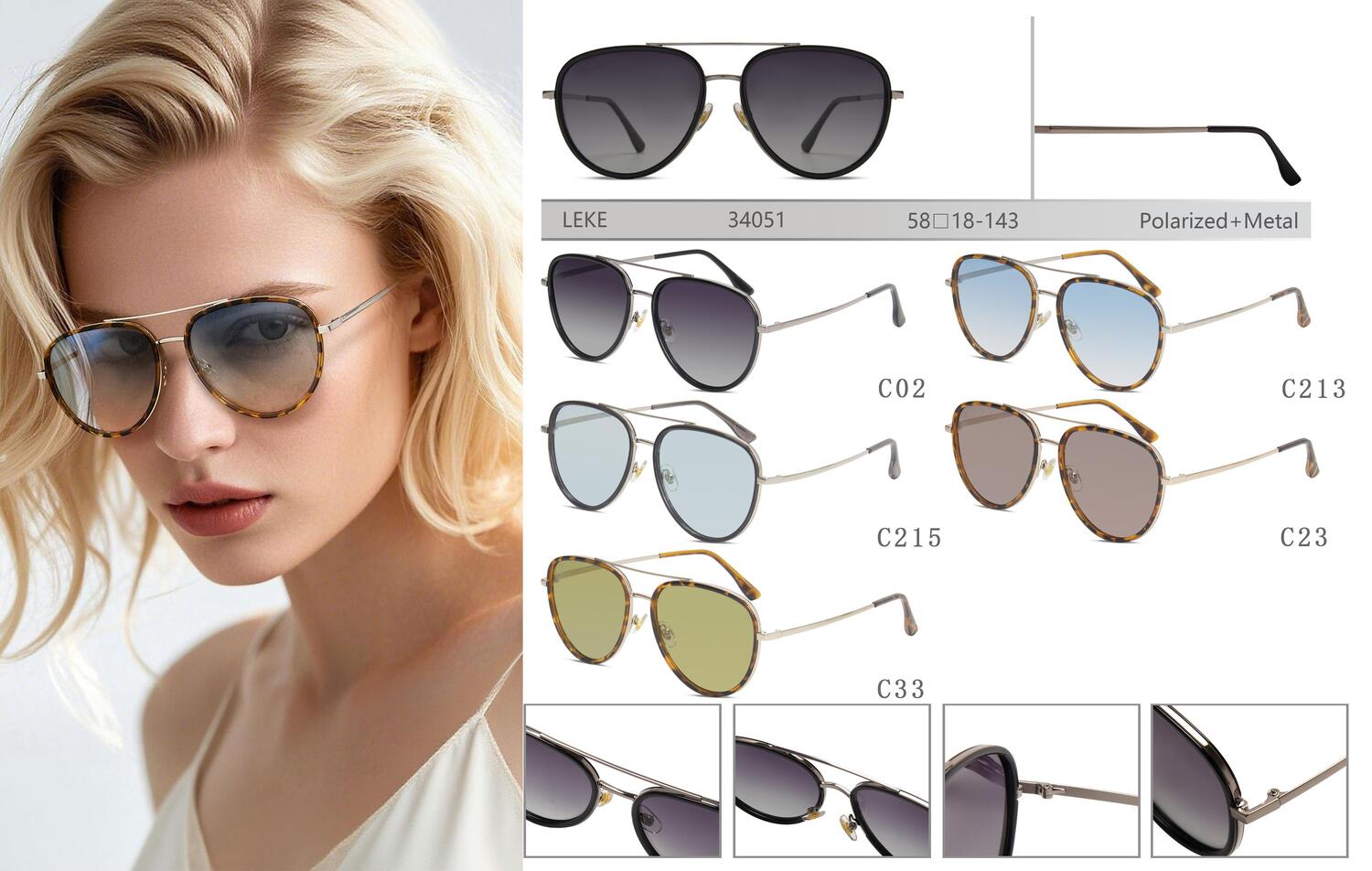 Polarized metal sunglasses for women Leke LK34051