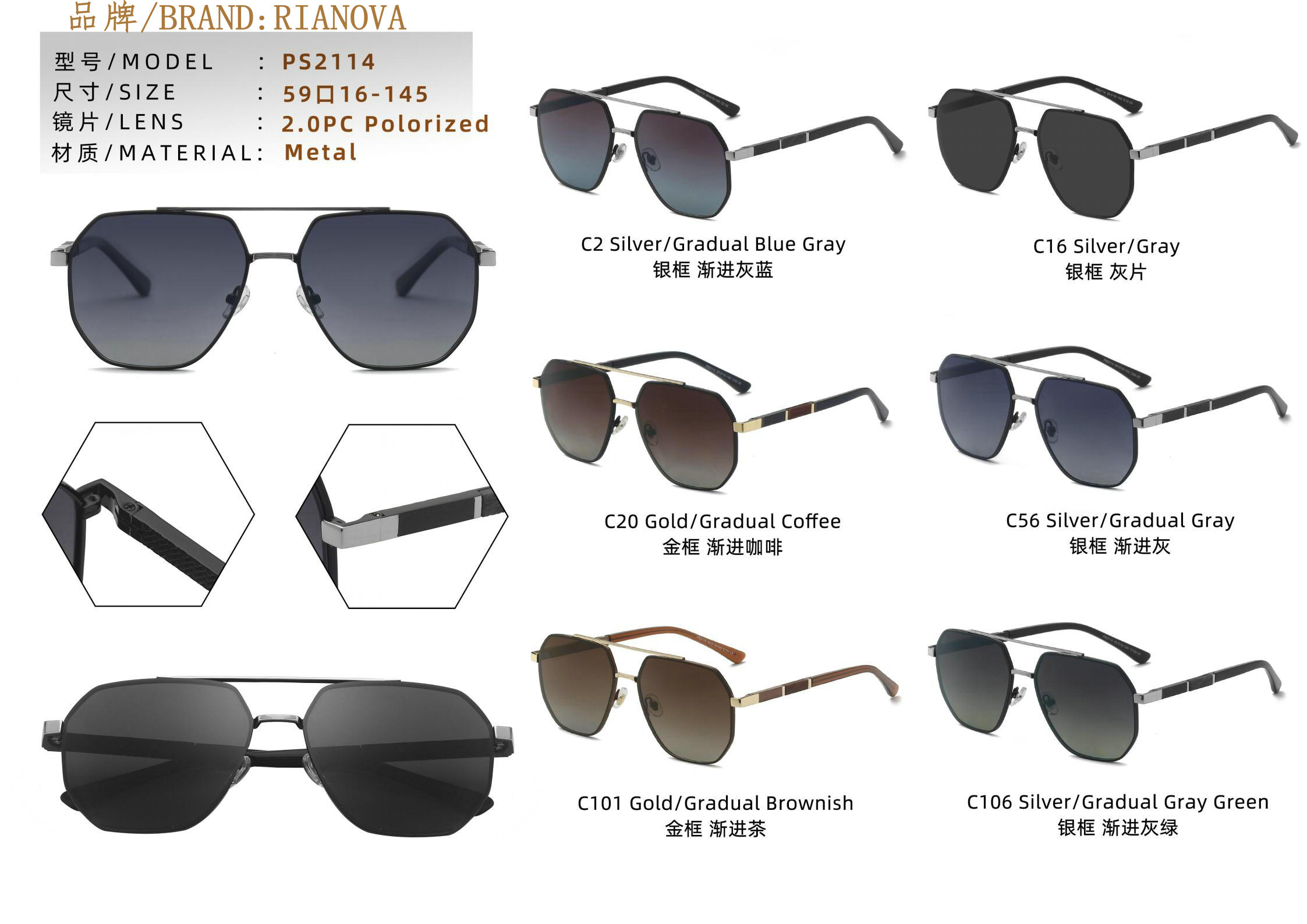 Polarized metal sunglasses Rianova PS2114