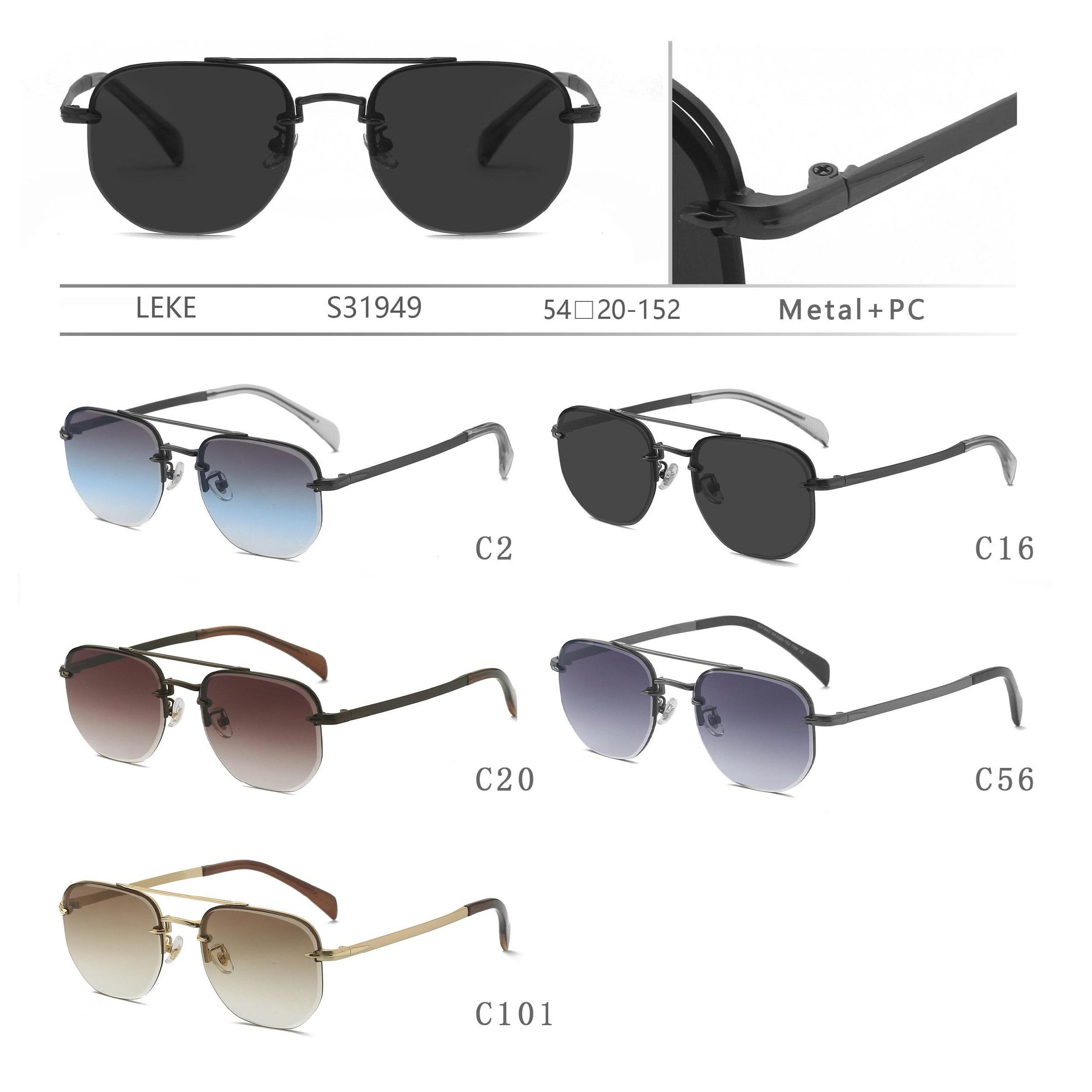 Semi-rimless polarized metal sunglasses Leke S31949