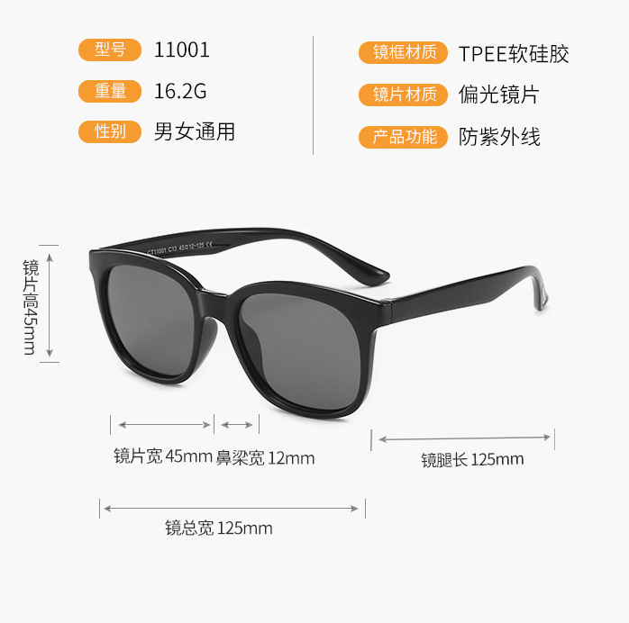 Polarized silicone sunglasses with UV400 protection for kids T11001