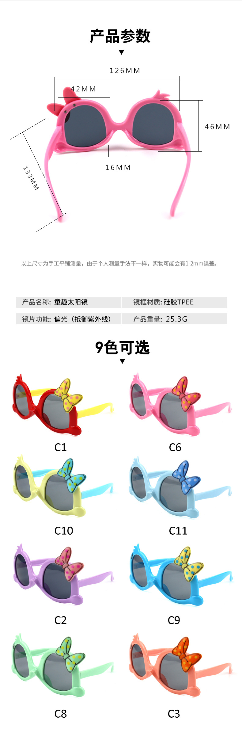 - Lens material: plastic TAC
