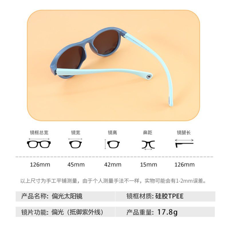 These children's sunglasses are made of soft, hypoallergenic silicone for comfortable all-day wear. They feature full UV protection lenses to protect your baby's eyes from the sun's harmful rays. Colorful and stylish, the glasses are available in a variety of colors, making them attractive to children. Their flexibility and durability make them ideal for active beach activities or outdoor play.