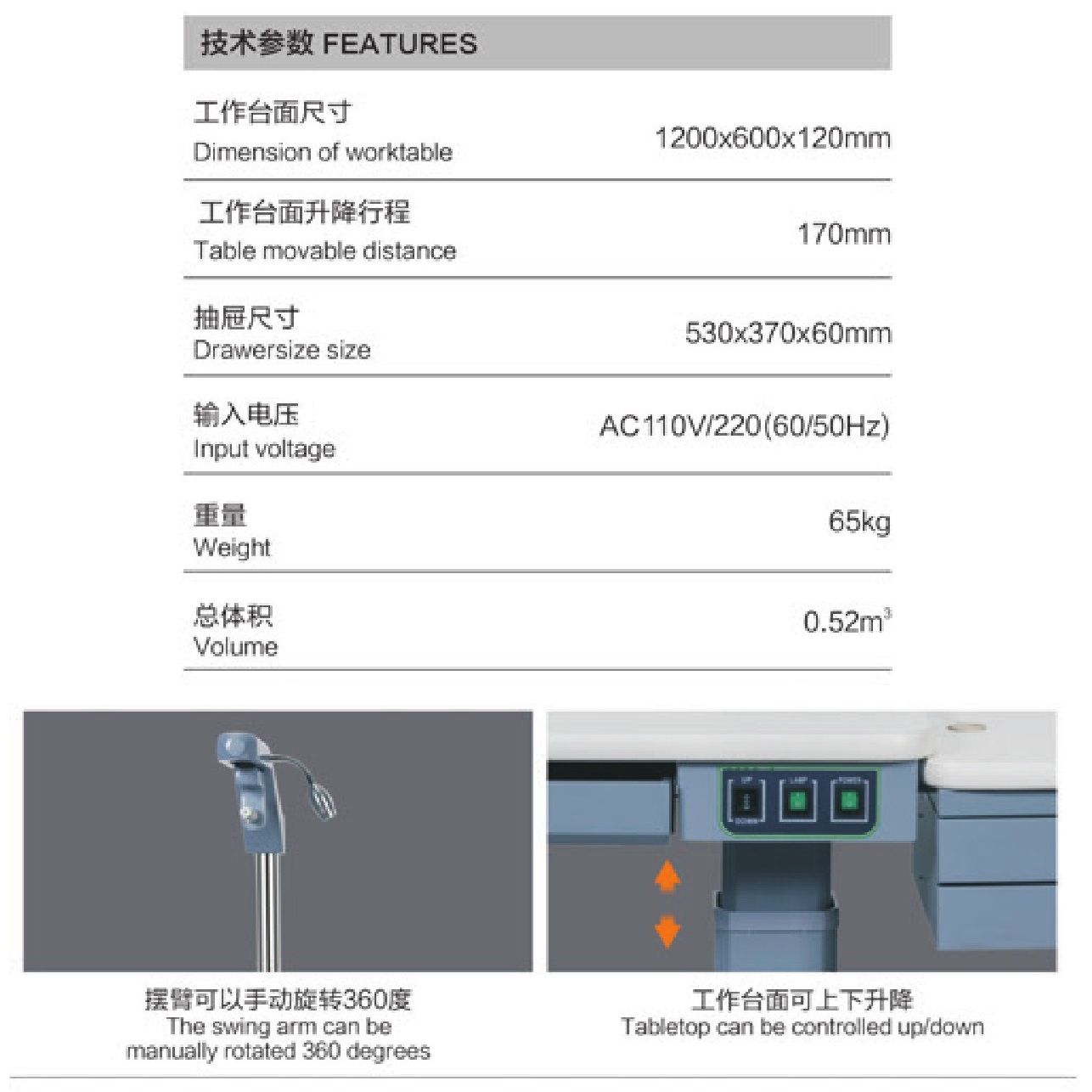 - Tabletop size: 1200 * 600 * 120 mm