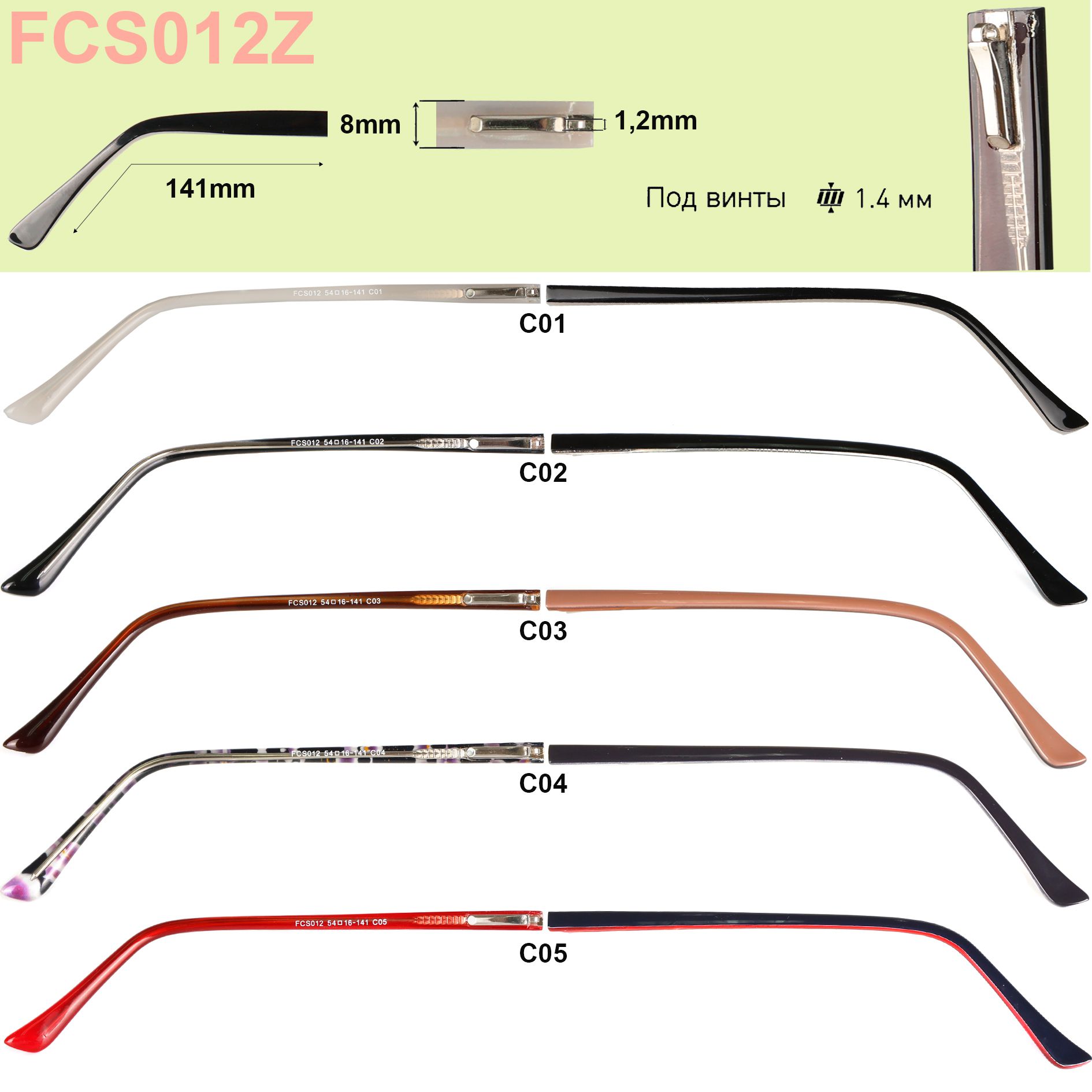 Temples (shackle) to frames plastic with flex FCS012Z (price per pair) 141mm*8mm